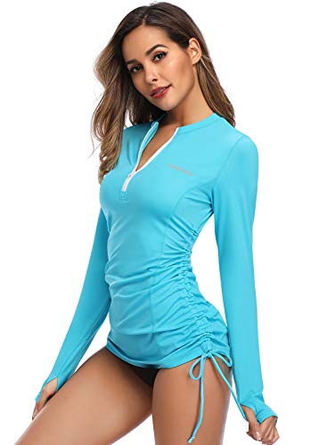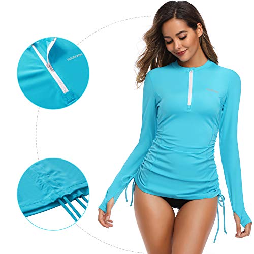 HISKYWIN Women’s Long Sleeve UV Sun Protection Rash Guard Side Adjustable Wetsuit Swimsuit Top