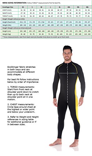 This stinger suit makes the perfect easy-solution to your sun protection alternatives; it fits like a second skin and provide freedom of movements. EcoStinger stinger suit will give you a look like no other! For extra comfort the suit stretches two ways, include flatlock stitching and front zipper for easy wear. Stinger suits and Dive Skins both refer to same style of light weight full body suits, made of elastic fabric and is suitable for warm and lukewarm waters, and can be used for all beach and outdoor activities.