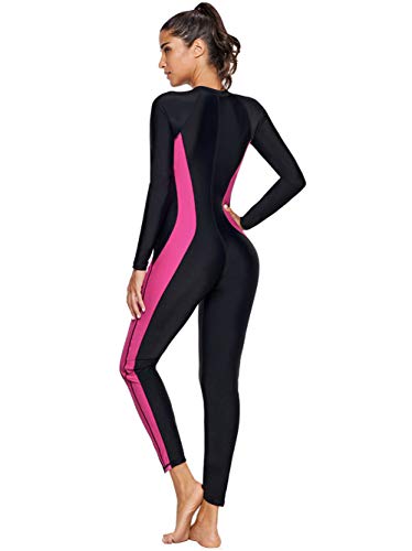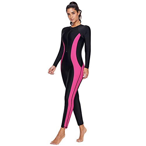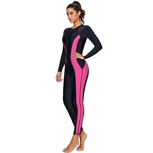 Women’s One Piece Rash Guard Zip Front, Full Body Cover Wetsuit, Sun Protection Long Sleeve Dive Skin Surf Suit S-XXXL…